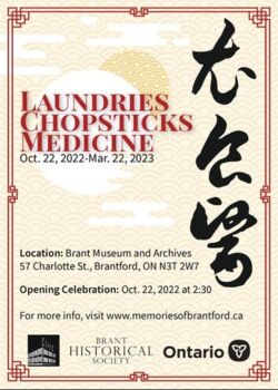 Laundries, Chopsticks, Medicine is a special exhibit at Brant Museum and Archives. It was created in partnership with the Brant Historical Society, Wilfrid Laurier University, and the Brant Theatre Workshop, and was curated by Dr. Christina Han.